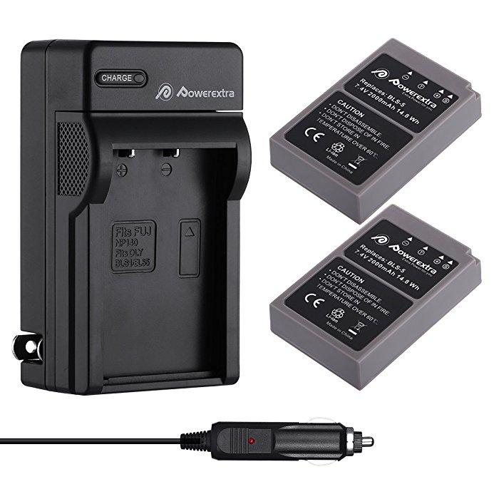 — Package includes 2 batteries for Olympus BLS-5, BLS-50 and PS-BLS5.