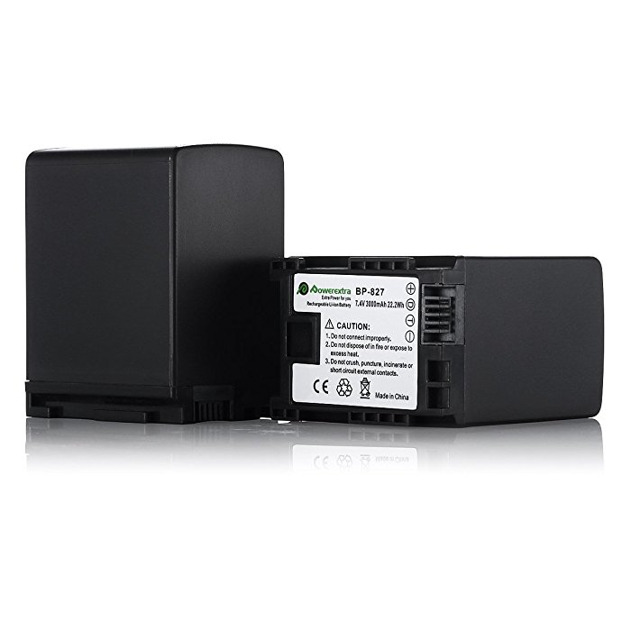 These 2-pack Powerextra 3000mAh capacity, 7.4 volts Li-ion camera batteries are designed for Canon BP-827/BP-828-M.